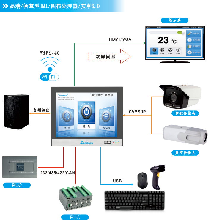 ● 支持全網(wǎng)通4G網(wǎng)絡(luò),WiFi(802.11a/b/g/n)。顯控觸摸屏