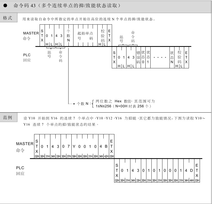 FATEK 臺灣永宏PLC編程命令碼43.多個連續單點的狀態讀取
