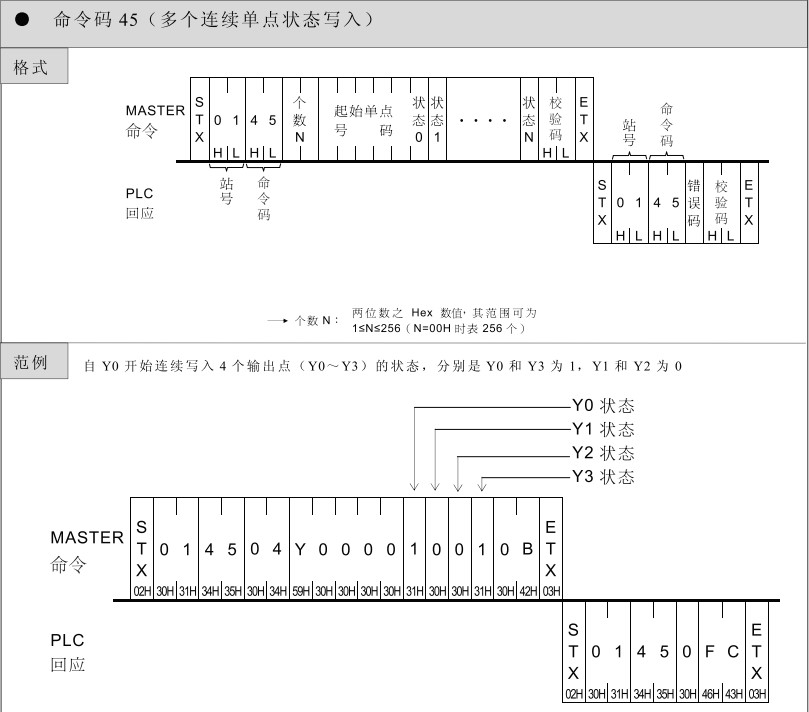 FATEK 臺灣永宏PLC 編程命令碼45.多個連續單點狀態寫入