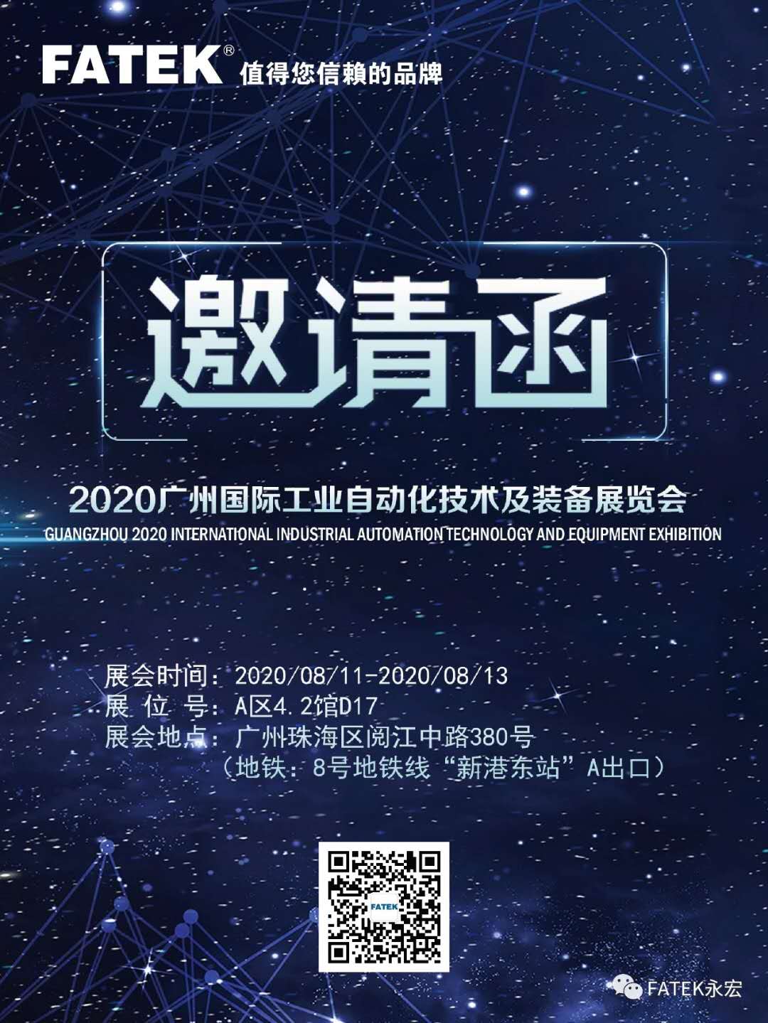 2020年8月11日~13日臺灣永宏電機將攜新產品及自動化解決方案亮相 廣州國際工業自動化技術及裝備展覽會。誠摯邀請