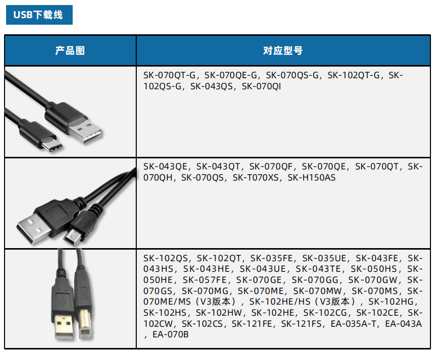 ,EA-070B 對應不同的型號用不同的 數據 下載線